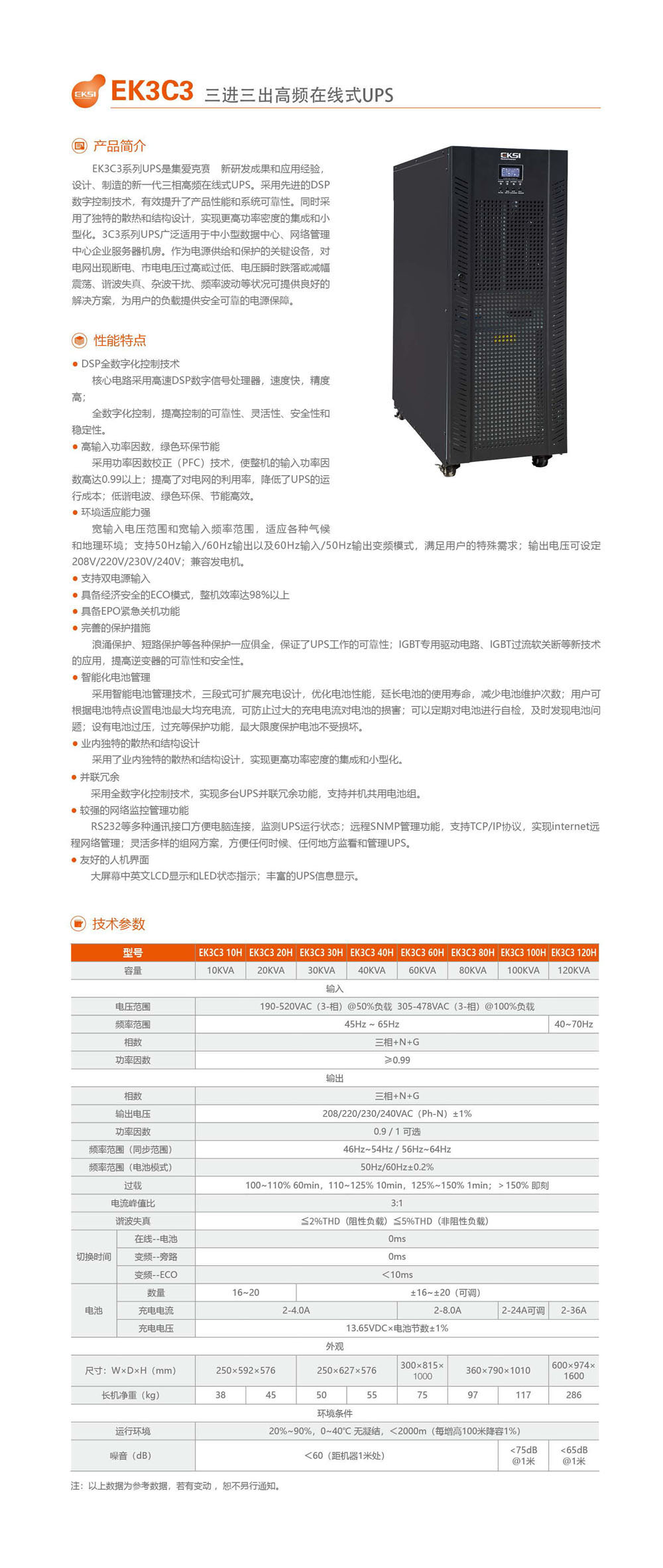 功率:10–20 kVA 電壓:380 / 400 / 415 V 安裝方式:塔式