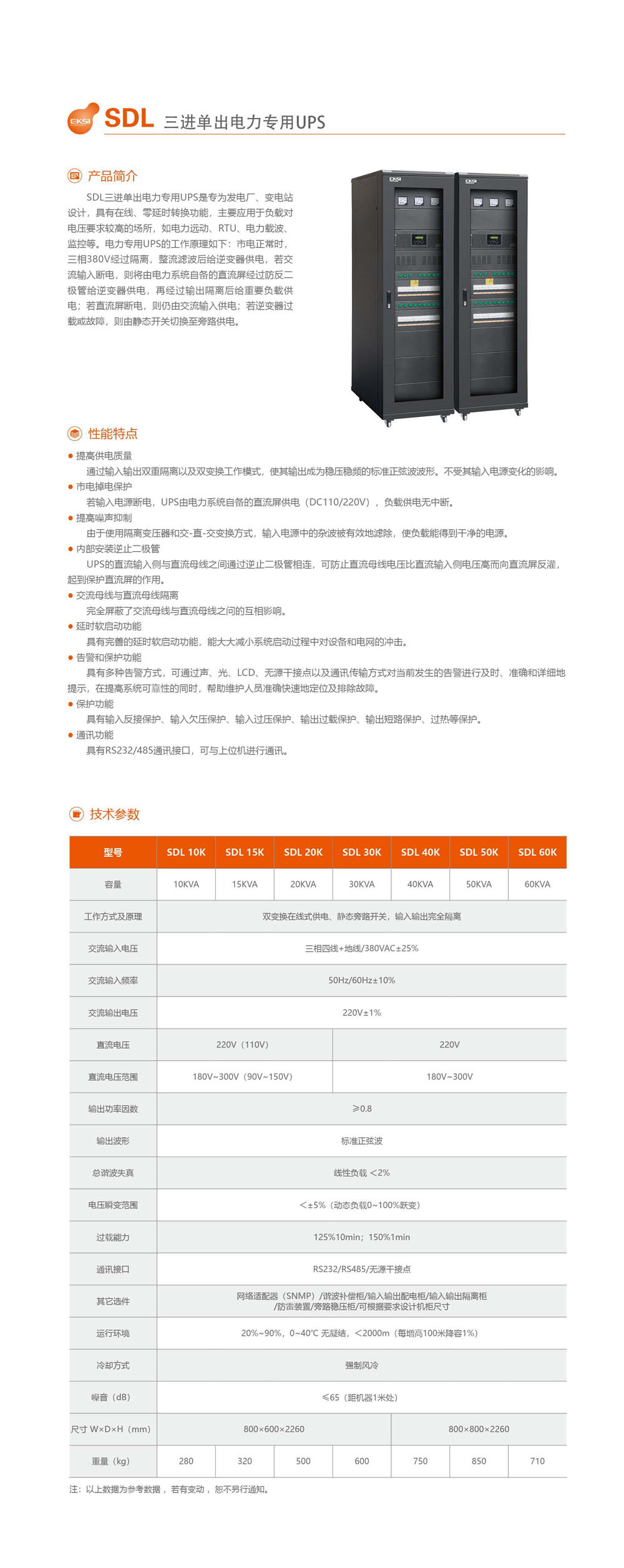 功率:10–60 kVA 電壓:380V/220V 安裝方式:屏柜式